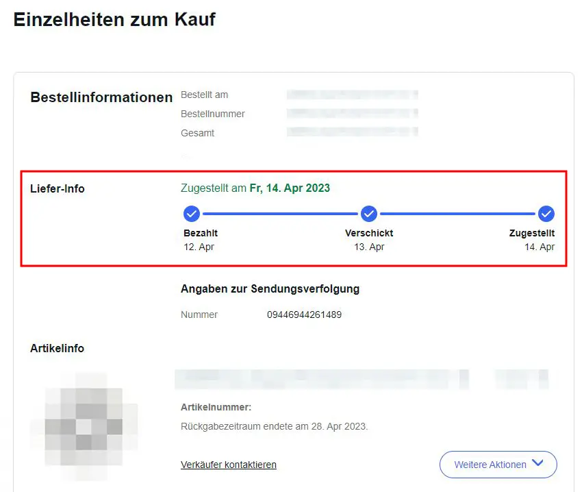 Wenn Du bei uns direkt im Online-Shop kaufst, erhältst Du nach dem Versand Deiner Ware automatisch eine Versandbestätigung inkl. Sendungsverfolgungslink per E-Mail zugesendet. Wenn Du unsere Produkte auf anderen Vertriebskanälen gekauft hast, wird Dir die Sendungsnummer vom jeweiligen Vertriebspartner zur Verfügung gestellt. Auf den Plattformen Amazon und Ebay findest Du die Sendungsnummer bspw. wie folgt: