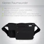 Im vorderen Bereich ist ein Extrafach für Dein Smartphone integriert, welches sofortige Griffbereitschaft ermöglicht. Die zentrale Verschlussklappe ist mit einem Magnetclip gesichert, damit Du auch schnellen Zugriff auf Deine Utensilien hast.